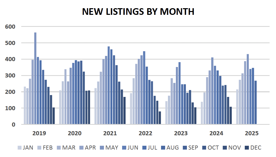 New Listings decreased by -10% YOY in August 2025, and also significantly Month-Over-Month to July (-23%), bucking the increased Listing trend which we have seen for most of this year. This decline also helped reduce our Months of Supply from July to August - however, we still remain at 10-year highs in inventory.