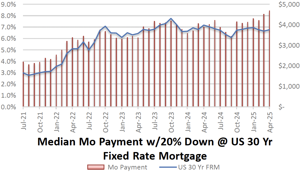 The Median Monthly Payment (w/ 20% down @ average FRM) for August 2025 came in at $4,326 - continuing contribution to market stagnation, especially in the <$1M market. Early September is showing signs of rate relief, which we saw last Fall as well - however, we do not anticipate that these reductions will be massive.